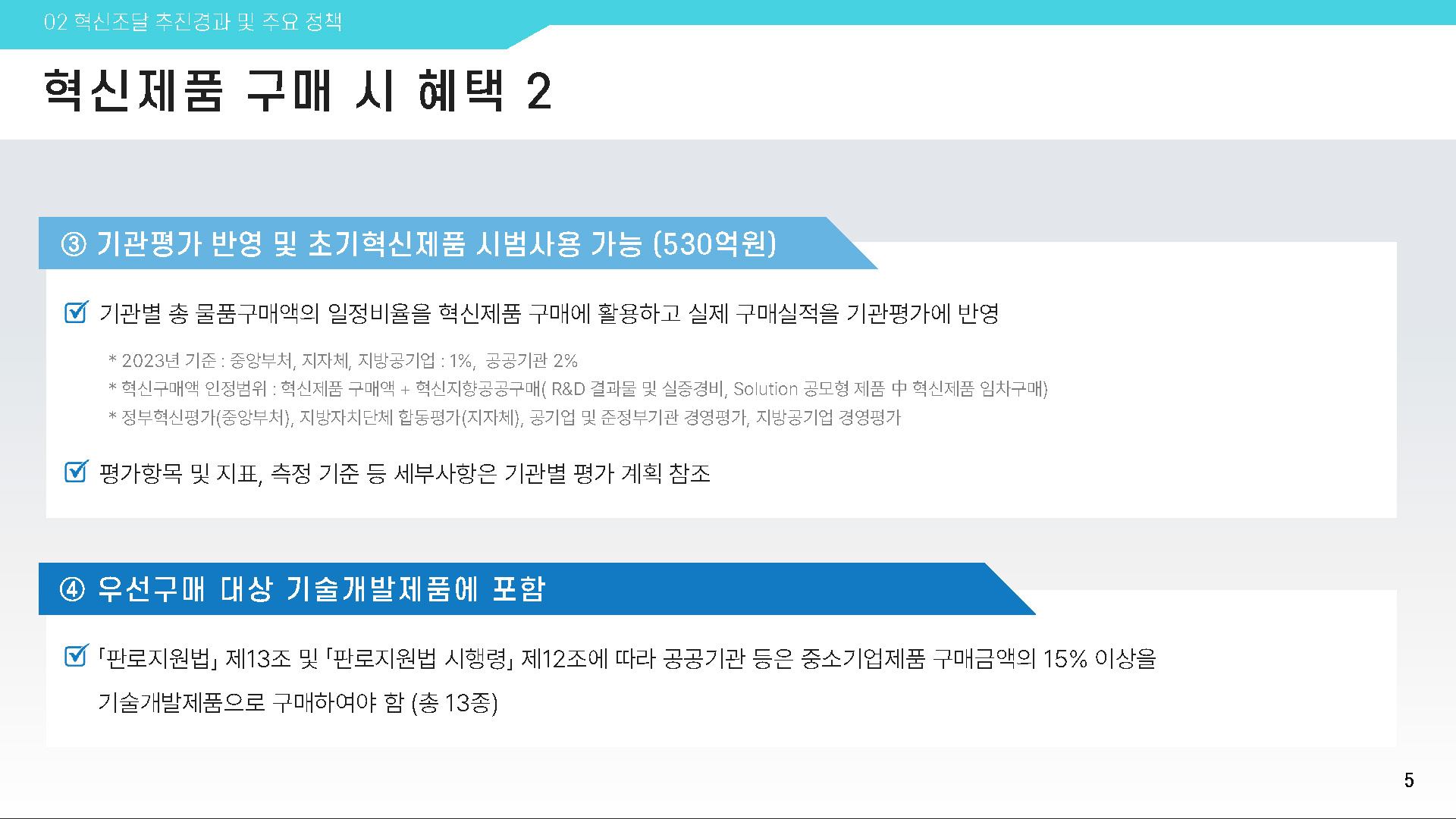 -아울러 혁신제품을 개발 중소기업이나 스타트업이 공공 시장에 진입 할때 안정적인 수요기반 확보